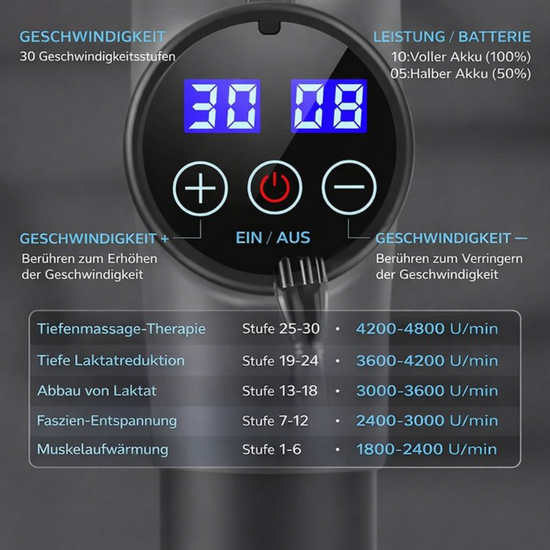 Dank 30 wählbarer Stufen arbeitet die Vibro Max mit kontrollierten Vibrationen und lockert Muskeln angenehm, ohne Druck oder Überreizung – ideal auch für empfindlichere Körper.