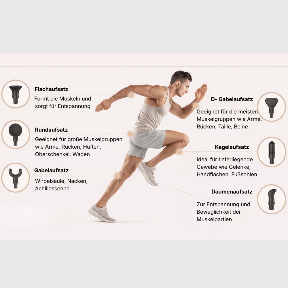 6 austauschbare Aufsätze für verschiedene Muskelgruppen