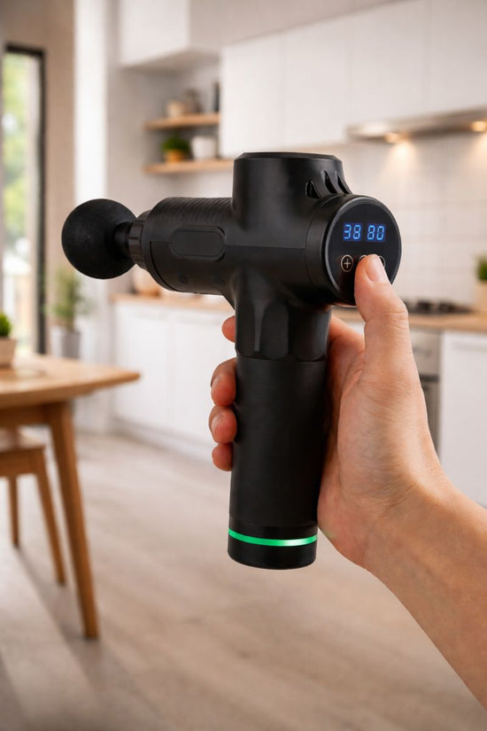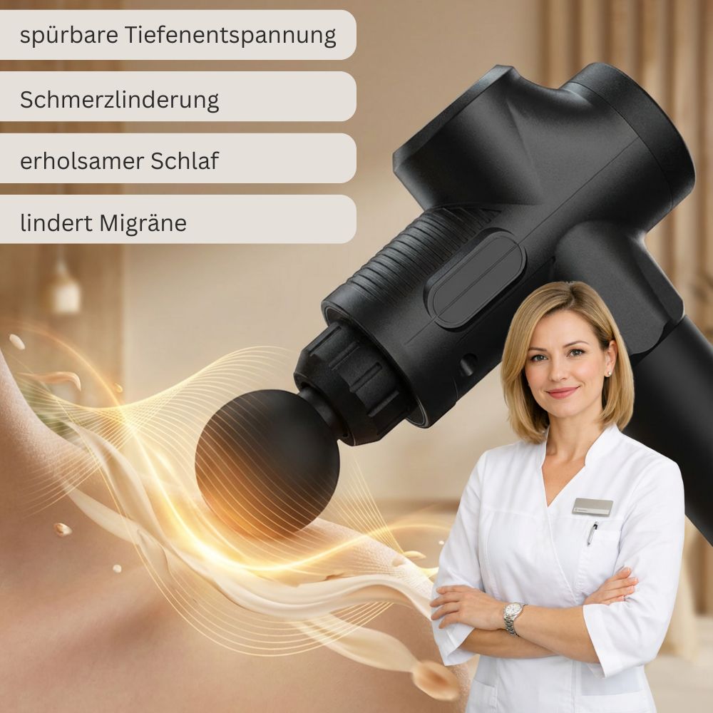 Unsere Massagepistole Vibro Max löst Verspannungen, fördert die Regeneration deiner Muskeln und sorgt für spürbare Erholung – jederzeit, genau dann, wenn du sie brauchst.